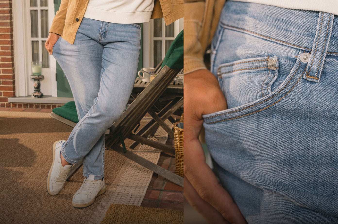 Explore our full lineup of fabrics, from our Classic Stretch-Denim, the cashmere infused Cashtech™, to cozy Flannel-Lined — all designed to deliver unbeatable comfort and fit.