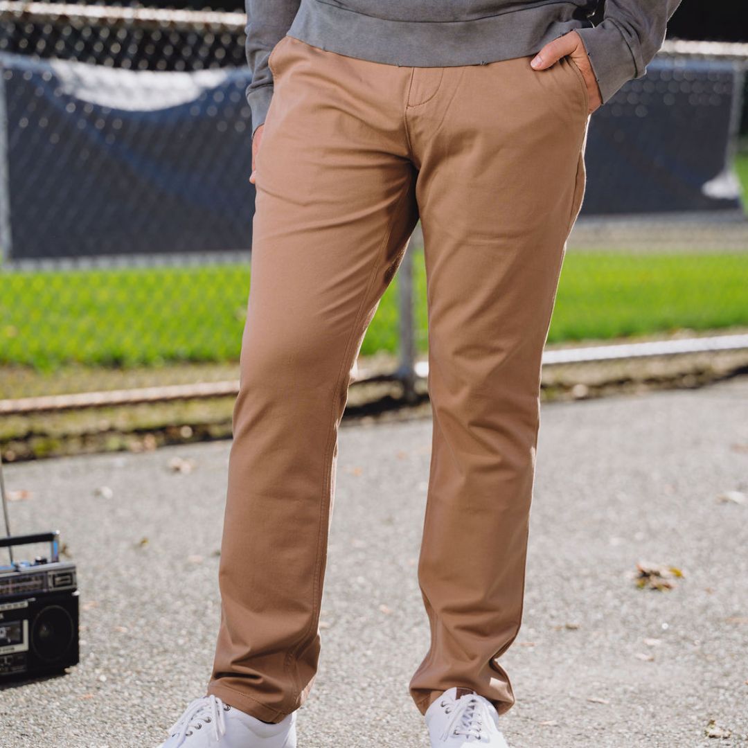 My grandson is a throwers for a college track and field team. Your chinos are amazing. It is so nice to go out with him in something other than sweatpants. I highly recommend these pants.