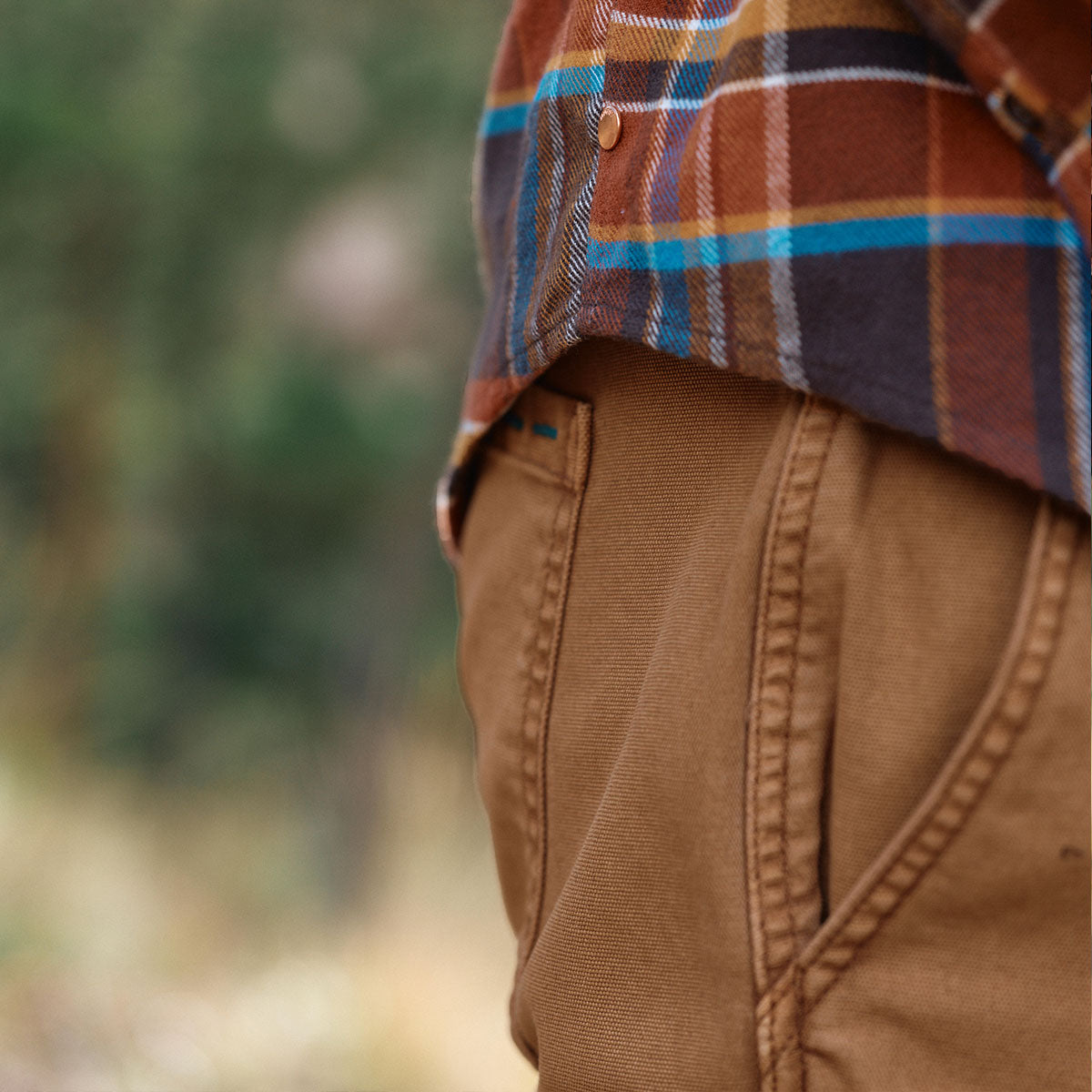 We're taking these bad boys off road - the first Mugsy utility pant is here. Crafted from heavyweight stretch canvas material that's tougher than nails. If you're in the Salty Spatoon, you're wearing these bad boys. In a looser fit built for movement and ready for anything you can throw at them. This perrrty Earth tone brown is washed to perfection and oh-so-smooth.