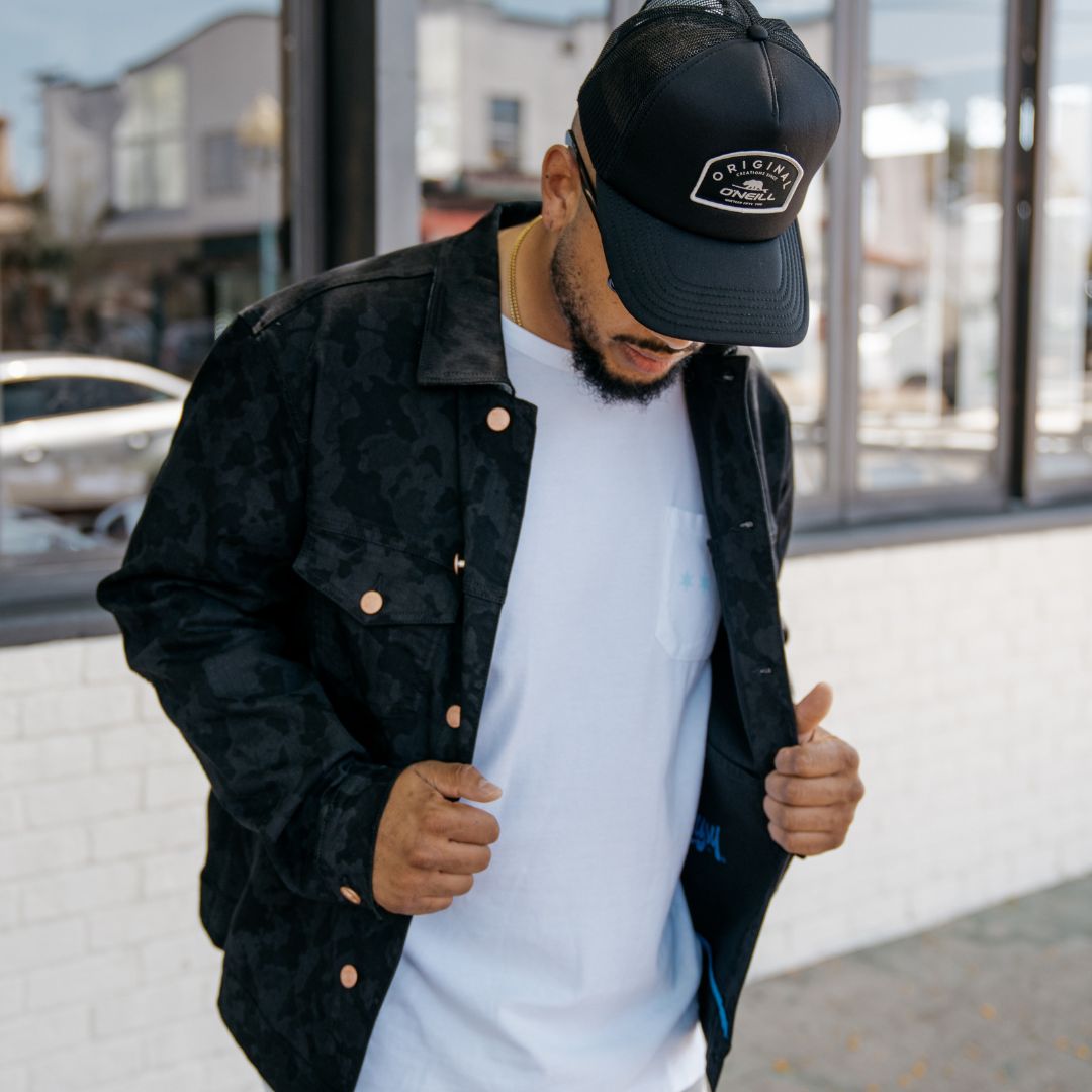 The most comfortable denim jacket ever made, now in a subtle black camo. As the (self-proclaimed) kings of denim it was just a matter of time before we got into the jacket game. Welp, we’ve arrived. A new take on our casual, retro jean jacket. Constructed with our patented stretch denim and chill vibes, this baby handles open air road trips up and down the coast with ease.