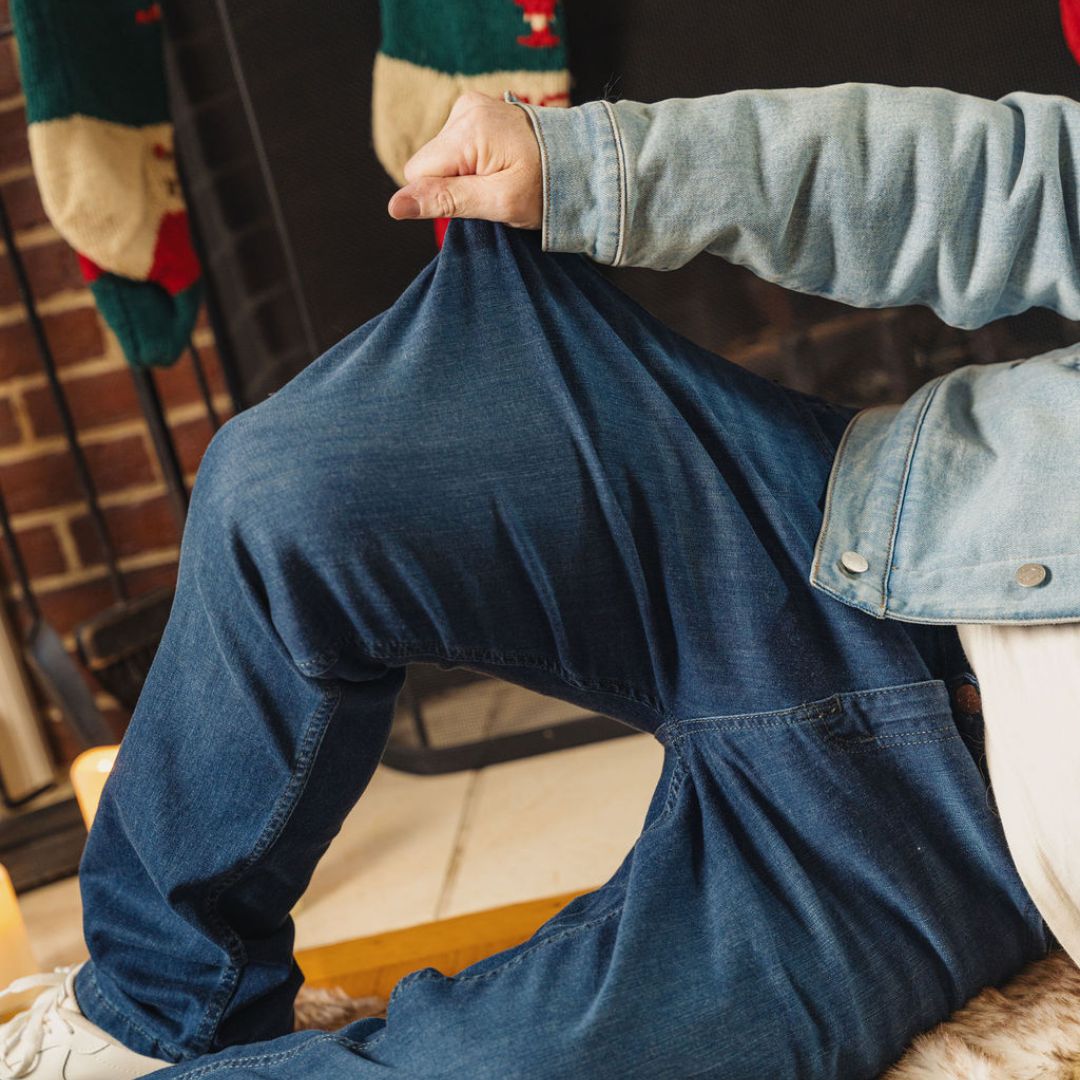 Love these jeans so much, I purchased 10 different styles/colors. They stretch around my body like no other pants or jeans have in the past. Lightweight and great feeling.