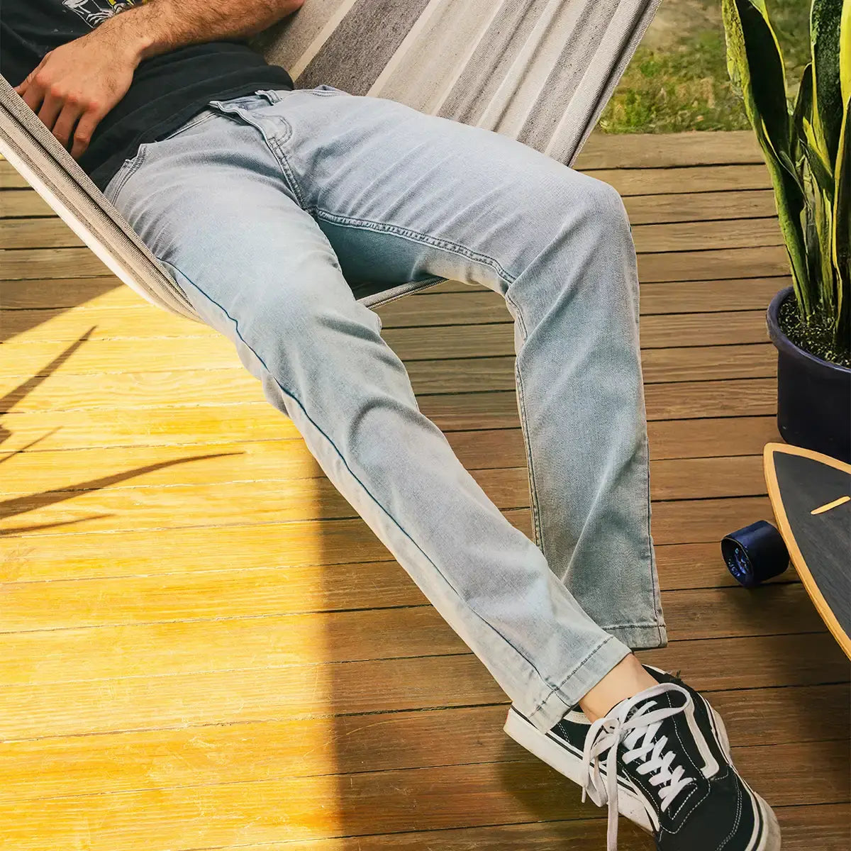 We’ve spent 10 years perfecting it. Compared to other "stretch jeans", we use twice as much spandex & more premium cotton, so they feel softer, move better, and hold up longer without feeling flimsy.